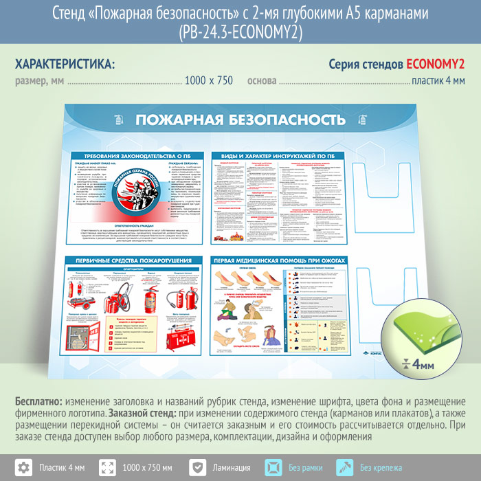 Стенд «Пожарная безопасность» с 2-мя глубокими А5 карманами (PB-24.3-ECONOMY2) в Омске купить