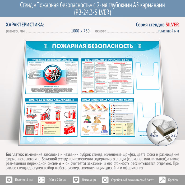 Стенд «Пожарная безопасность» с 2-мя глубокими А5 карманами (PB-24.3-SILVER) в Омске купить