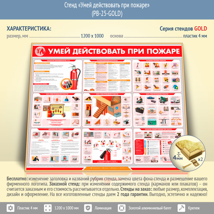 Стенд «Умей действовать при пожаре» (PB-25-GOLD) в Омске купить