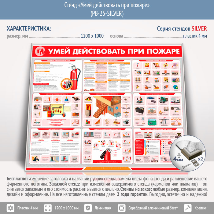 Стенд «Умей действовать при пожаре» (PB-25-SILVER) в Омске купить
