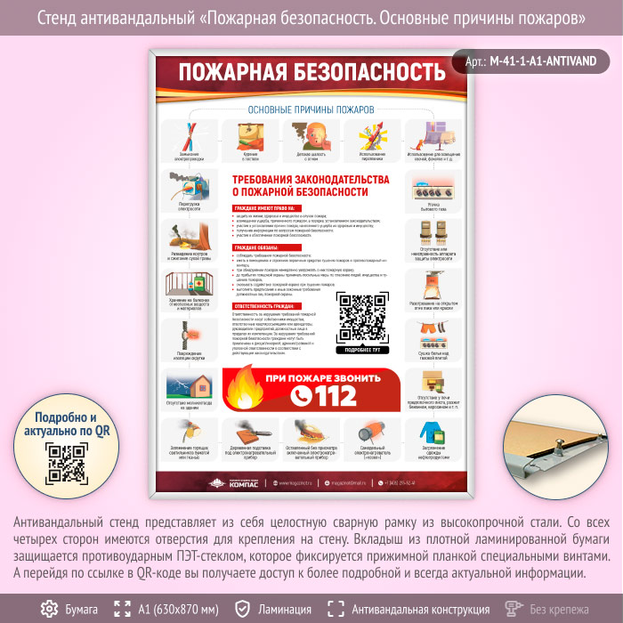 Стенд антивандальный «Пожарная безопасность. Основные причины пожаров» (M-41-1-А1-ANTIVAND) в Омске купить
