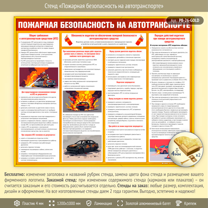 Стенд «Пожарная безопасность на автотранспорте» (PB-26-GOLD) в Омске купить