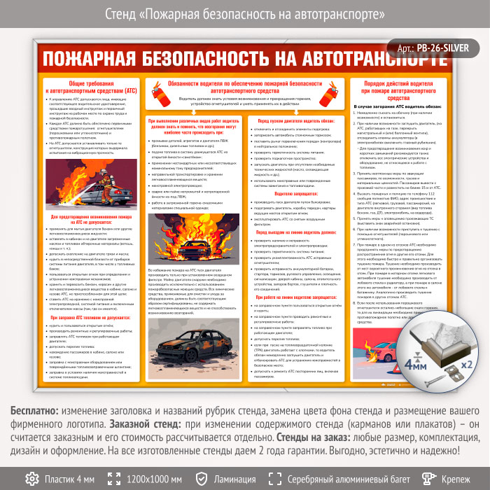 Стенд «Пожарная безопасность на автотранспорте» (PB-26-SILVER) в Омске купить