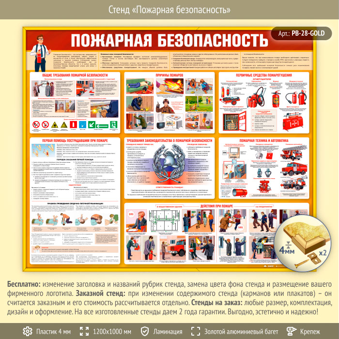 Стенд «Пожарная безопасность» (PB-28-GOLD) в Омске купить