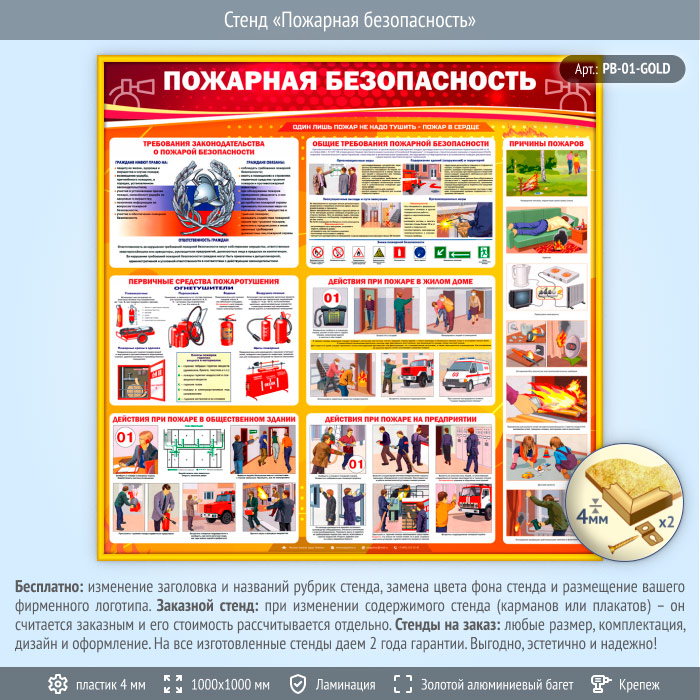 Стенд «Пожарная безопасность» (PB-01-GOLD) в Омске купить