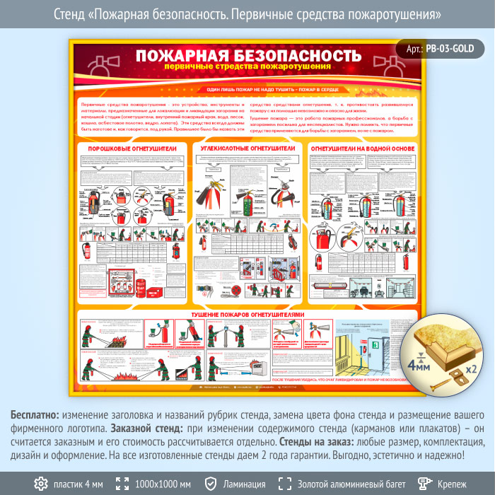 Стенд «Пожарная безопасность. Первичные средства пожаротушения» (PB-03-GOLD) в Омске купить