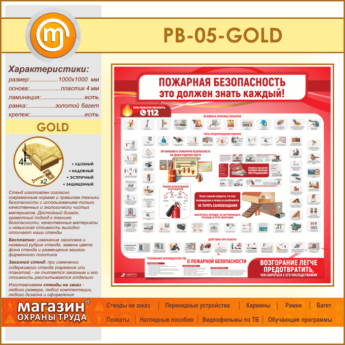 Стенд «Пожарная безопасность. Это должен знать каждый» (PB-05-GOLD) в Омске купить