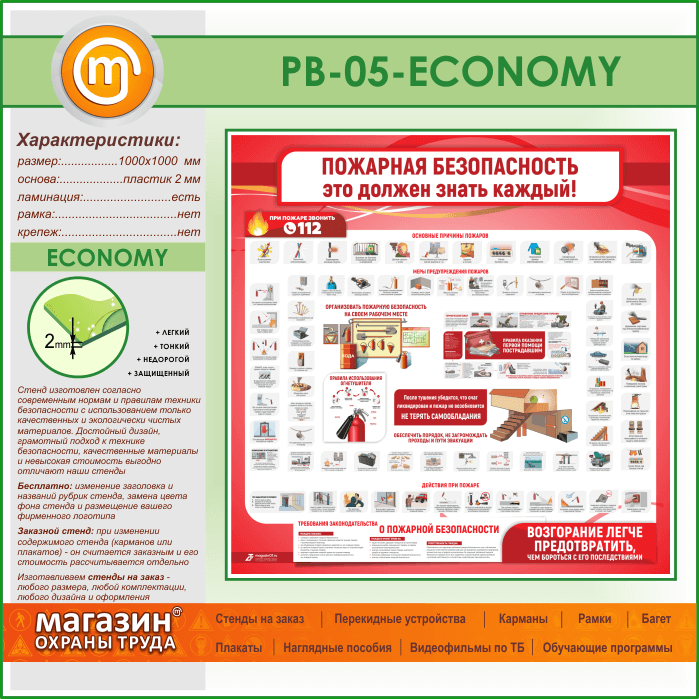 Стенд «Пожарная безопасность. Это должен знать каждый» (PB-05-ECONOMY) в Омске купить