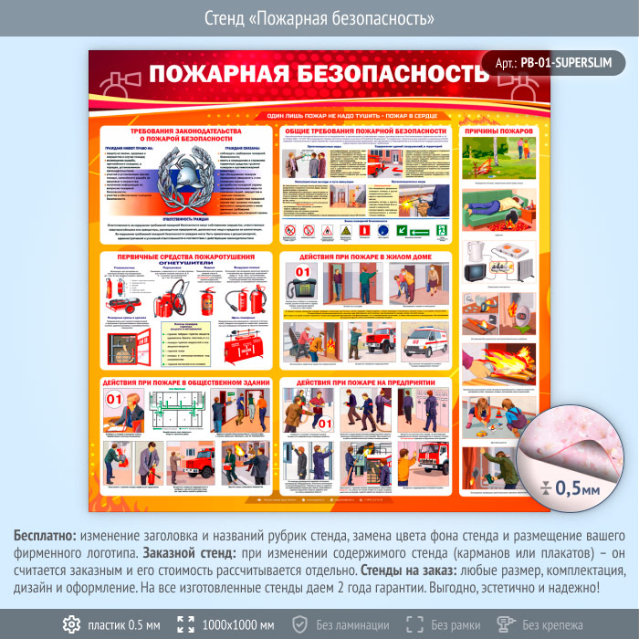 Стенд «Пожарная безопасность» (PB-01-SUPERSLIM) в Омске купить
