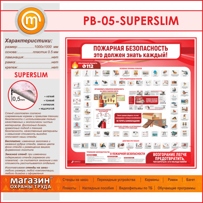 Стенд «Пожарная безопасность. Это должен знать каждый» (PB-05-SUPERSLIM) в Омске купить
