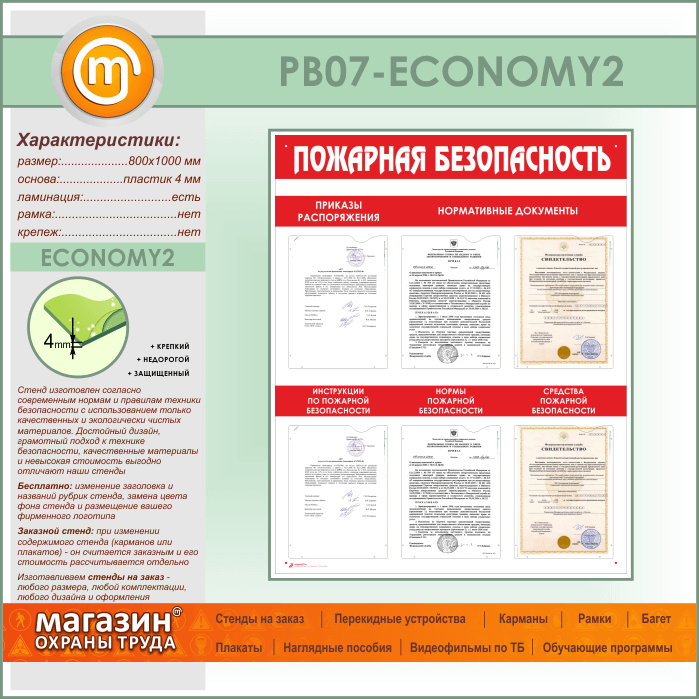 Стенд «Пожарная безопасность» с 6 карманами (PB-07-ECONOMY2) в Омске купить
