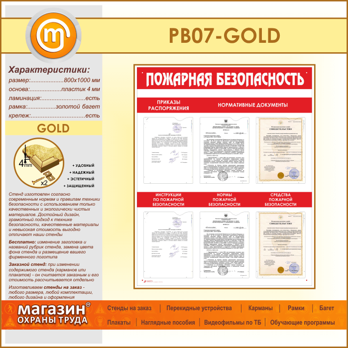 Стенд «Пожарная безопасность» с 6 карманами (PB-07-GOLD) в Омске купить