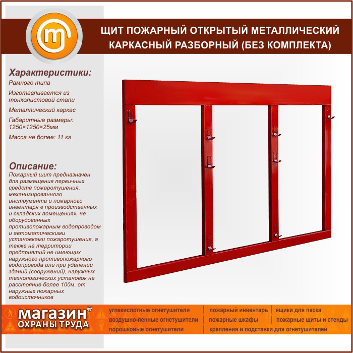 Щит пожарный открытый металлический каркасный разборный (без комплекта) в Омске купить