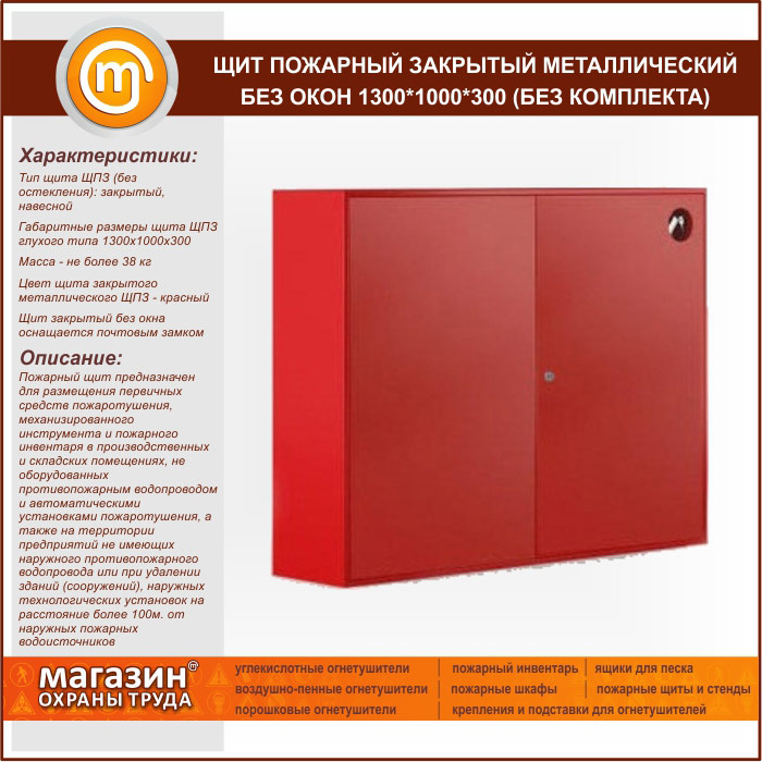 Щит пожарный закрытый металлический без окон 1300*1000*300 (без комплекта) в Омске купить