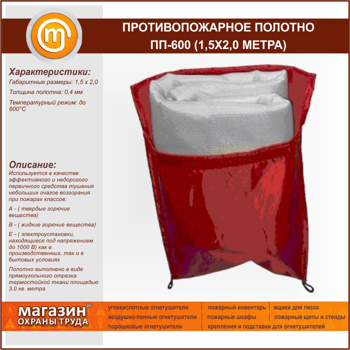 Противопожарное полотно ПП-600 (1, 5х2, 0 метра) в Омске купить