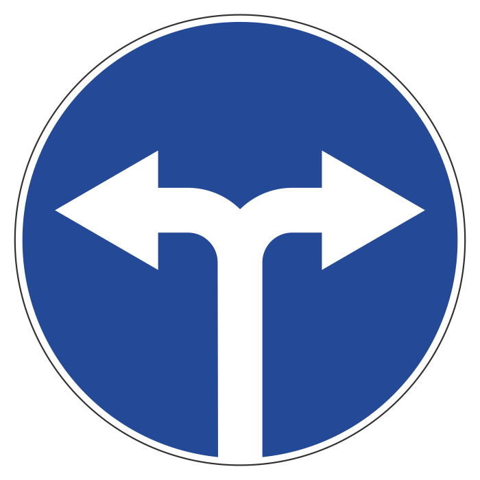 Дорожный знак 4.1.6 «Движение направо или налево» (металл 0,8 мм, I типоразмер: диаметр 600 мм, С/О пленка: тип В алмазная) в Омске купить