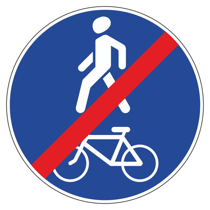 Дорожный знак 4.5.3 «Конец пешеходной и велосипедной дорожки с совмещенным движением» (металл 0,8 мм, II типоразмер: диаметр 700 мм, С/О пленка: тип А инженерная) в Омске купить