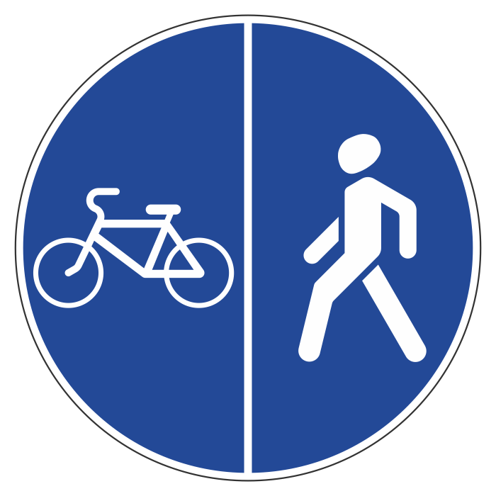 Дорожный знак 4.5.4 «Пешеходная и велосипедная дорожка с разделением движения» (металл 0,8 мм, II типоразмер: диаметр 700 мм, С/О пленка: тип В алмазная) в Омске купить