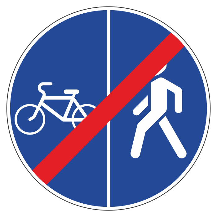 Дорожный знак 4.5.6 «Конец пешеходной и велосипедной дорожки с разделением движения» (металл 0,8 мм, II типоразмер: диаметр 700 мм, С/О пленка: тип В алмазная) в Омске купить
