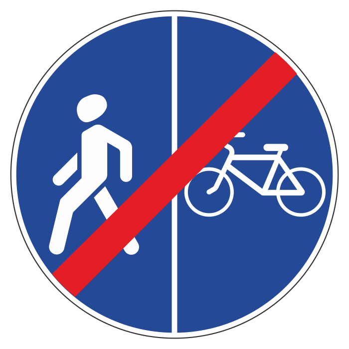 Дорожный знак 4.5.7 «Конец пешеходной и велосипедной дорожки с разделением движения» (металл 0,8 мм, II типоразмер: диаметр 700 мм, С/О пленка: тип А инженерная) в Омске купить