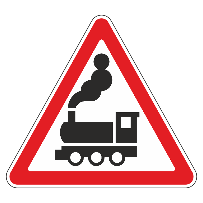 Дорожный знак 1.2 «Железнодорожный переезд без шлагбаума» (металл 0,8 мм, I типоразмер: сторона 700 мм, С/О пленка: тип А инженерная) в Омске купить