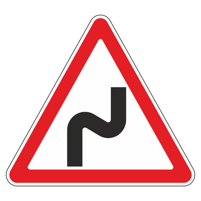 Дорожный знак 1.12.1 «Опасные повороты с первым поворотом направо» (металл 0,8 мм, III типоразмер: сторона 1200 мм, С/О пленка: тип А коммерческая) в Омске купить