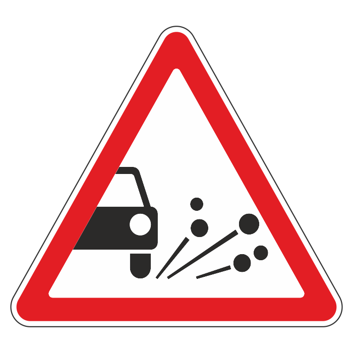 Дорожный знак 1.18 «Выброс гравия» (металл 0,8 мм, II типоразмер: сторона 900 мм, С/О пленка: тип А коммерческая) в Омске купить
