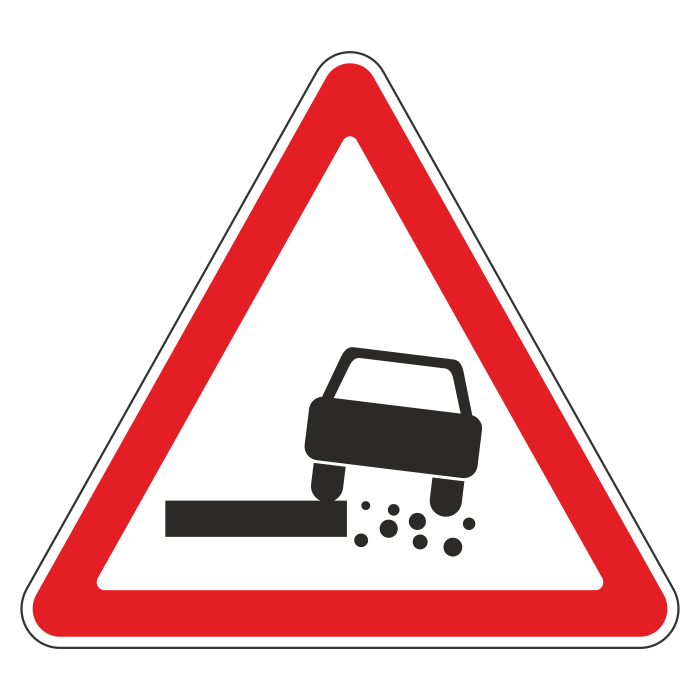 Дорожный знак 1.19 «Опасная обочина» (металл 0,8 мм, IV типоразмер: сторона 1500 мм, С/О пленка: тип А инженерная) в Омске купить