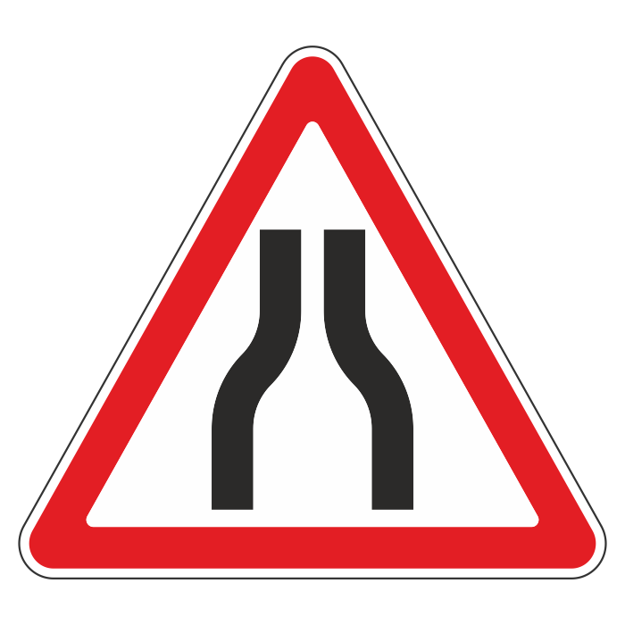 Дорожный знак 1.20.1 «Сужение дороги» (металл 0,8 мм, III типоразмер: сторона 1200 мм, С/О пленка: тип А коммерческая) в Омске купить