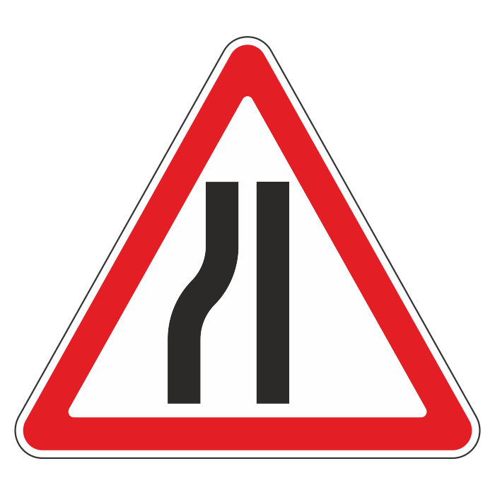 Дорожный знак 1.20.3 «Сужение дороги» (металл 0,8 мм, III типоразмер: сторона 1200 мм, С/О пленка: тип А коммерческая) в Омске купить