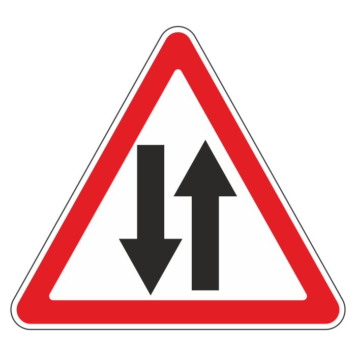 Дорожный знак 1.21 «Двустороннее движение» (металл 0,8 мм, IV типоразмер: сторона 1500 мм, С/О пленка: тип А коммерческая) в Омске купить