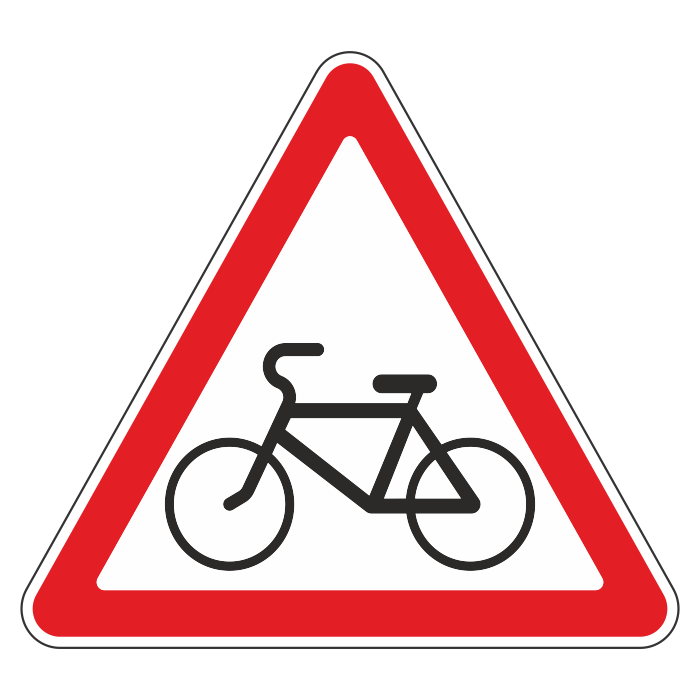 Дорожный знак 1.24 «Пересечение с велосипедной дорожкой или велопешеходной дорожкой» (металл 0,8 мм, III типоразмер: сторона 1200 мм, С/О пленка: тип А коммерческая) в Омске купить