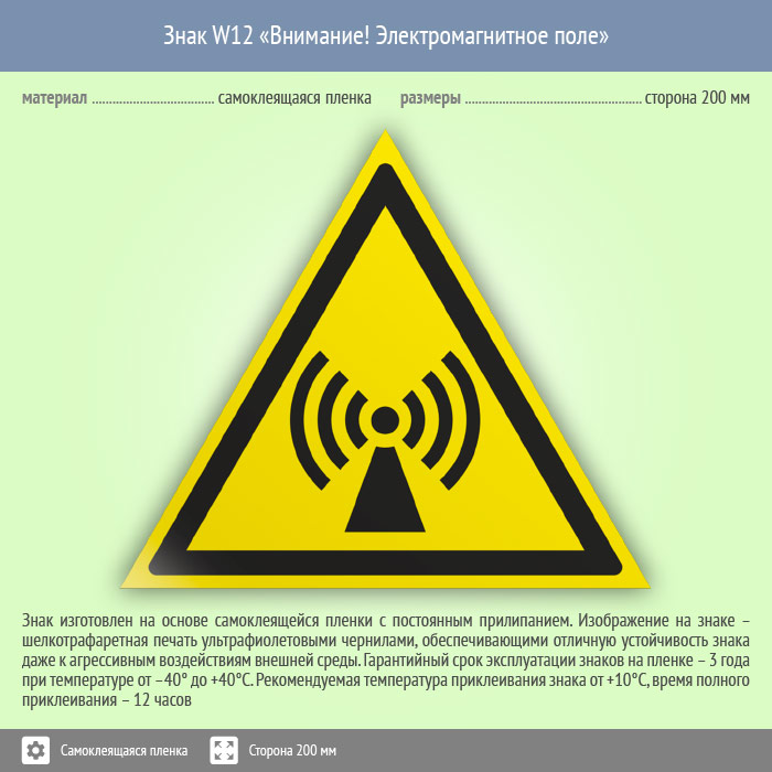 Знак W12 «Внимание! электромагнитное поле» (пленка, сторона 200 мм) в Омске купить