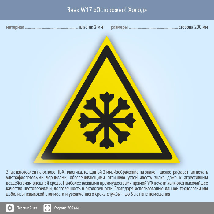 Знак W17 «Осторожно! холод» (пластик, сторона 200 мм) в Омске купить
