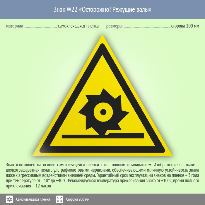 Знак W22 «Осторожно! режущие валы» (пленка, сторона 200 мм) в Омске купить