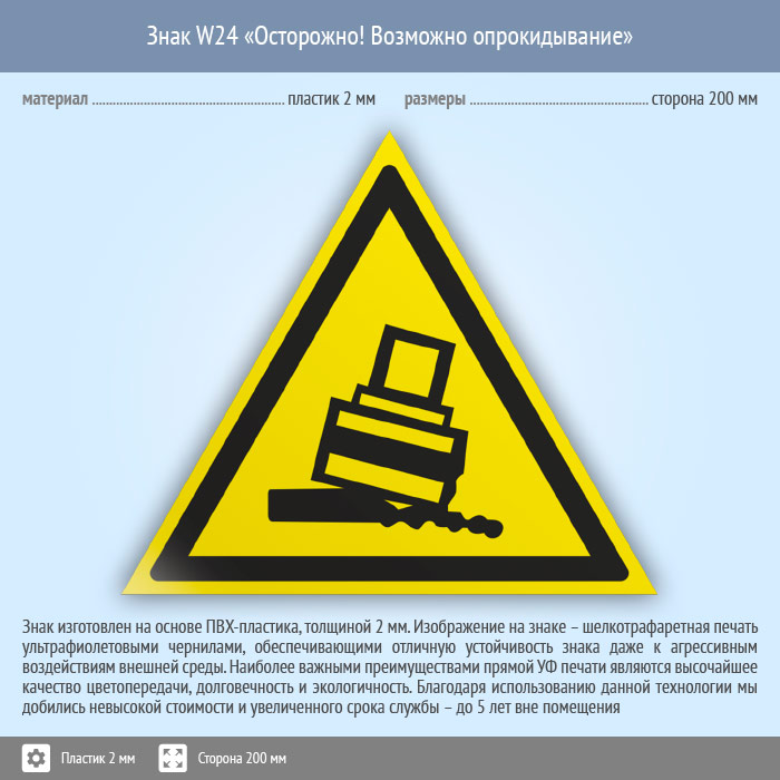 Знак W24 «Осторожно! возможно опрокидывание» (пластик, сторона 200 мм) в Омске купить