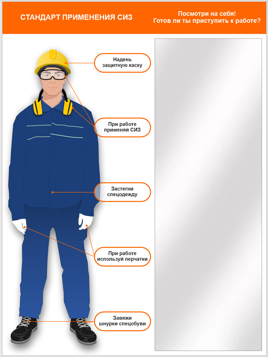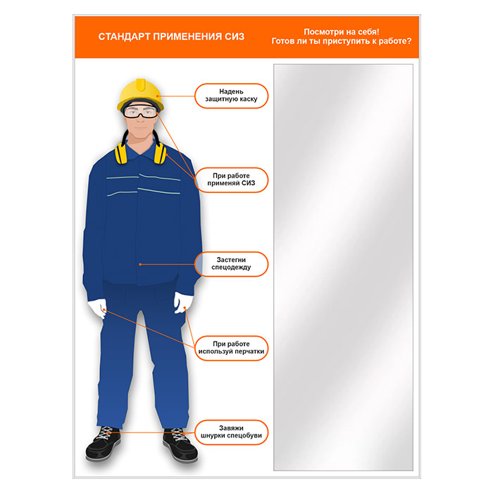 Стенд для демонстрации применения СИЗ с зеркалом, 1500х2000 мм в серебряном багете (СПС-01.2-С) в Омске купить