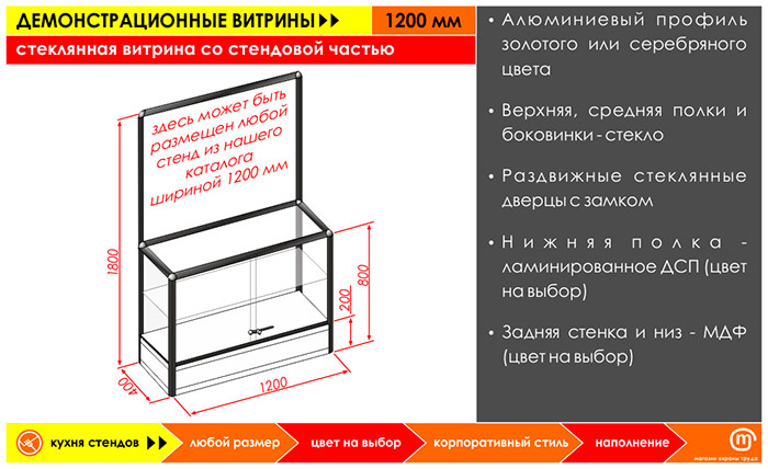 Стеклянная витрина со стендовой частью, 1200 мм в Омске купить