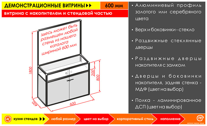 Витрина с накопителем и стендовой частью, 600 мм в Омске купить