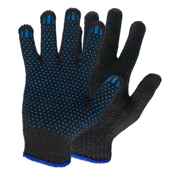 Перчатки Х/Б (5 нитей) черные с ПВХ "Точка" в Омске купить