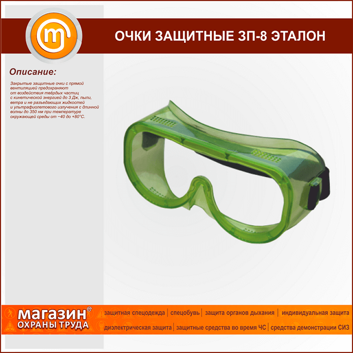Очки защитные закрытые с прямой вентиляцией ЗП8 «ЭТАЛОН» в Омске купить