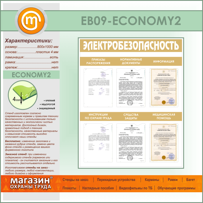 Стенд «Электробезопасность» с 6 карманами (EB-09)