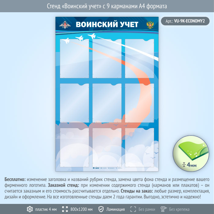 Стенд «Воинский учет» с 9 карманами А4 формата (VU-9K-ECONOMY2) в Омске купить