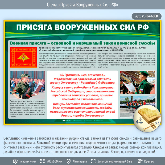 Стенд «Присяга Вооруженных Сил РФ» (VU-04-GOLD) в Омске купить