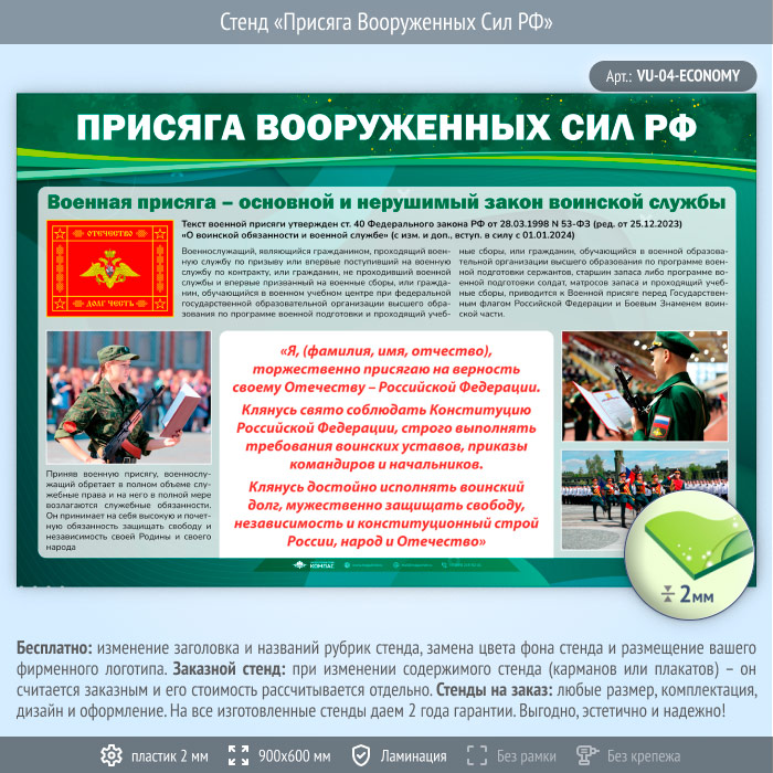 Стенд «Присяга Вооруженных Сил РФ» (VU-04-ECONOMY) в Омске купить