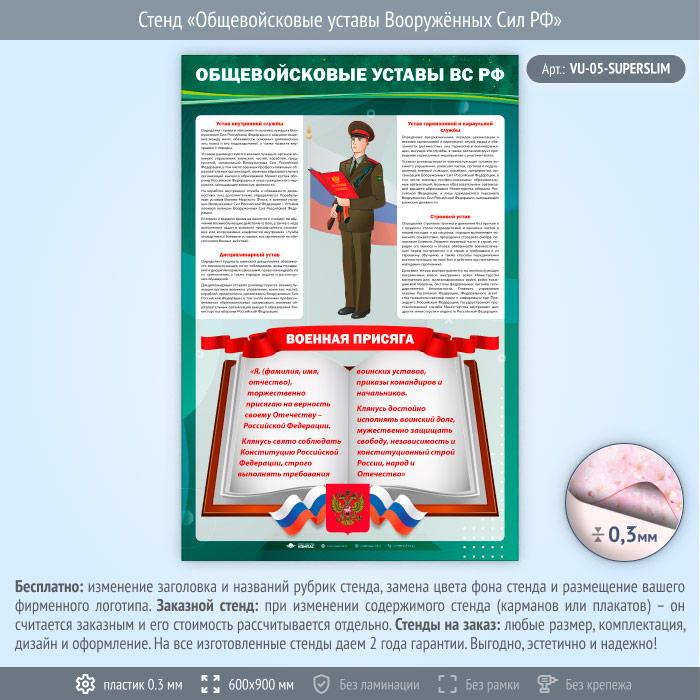 Стенд «Общевойсковые уставы Вооружённых Сил РФ» (VU-05-SUPERSLIM) в Омске купить