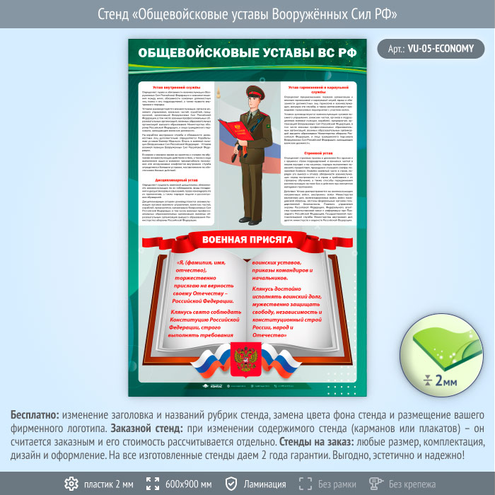 Стенд «Общевойсковые уставы Вооружённых Сил РФ» (VU-05-ECONOMY) в Омске купить
