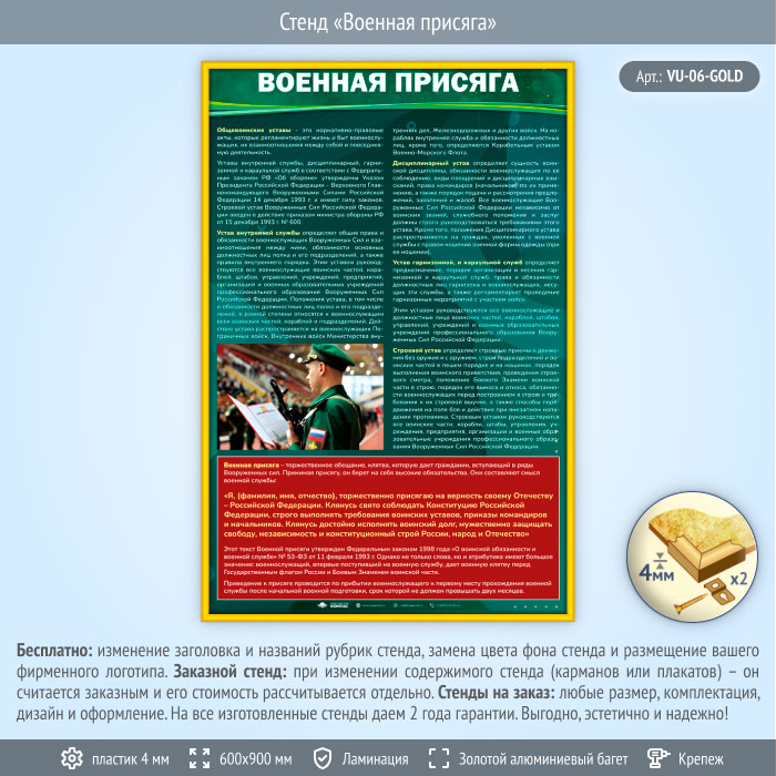 Стенд «Военная присяга» (VU-06-GOLD) в Омске купить