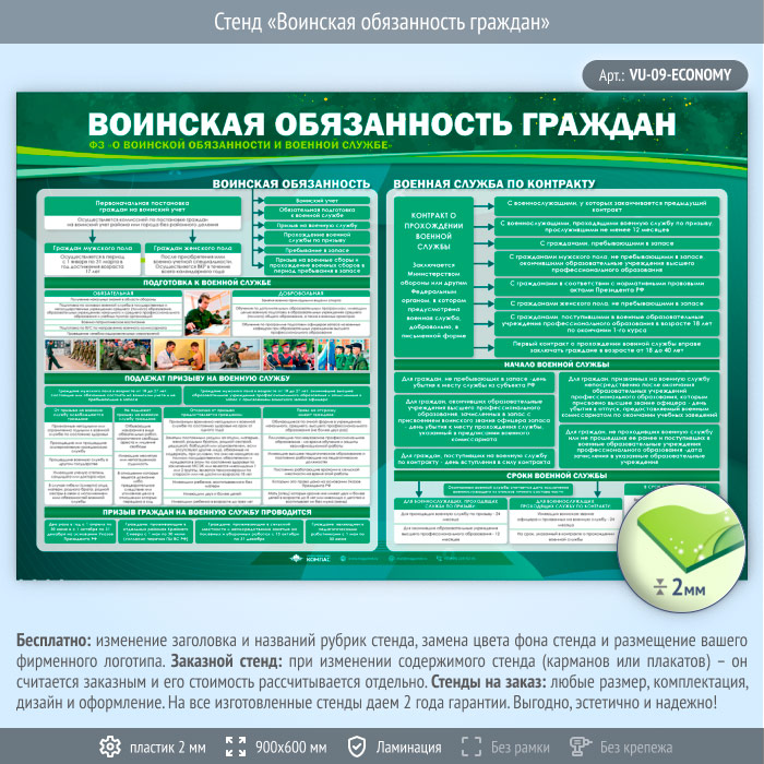 Стенд «Воинская обязанность граждан» (VU-09-ECONOMY) в Омске купить