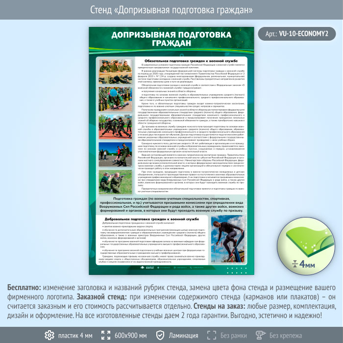 Стенд «Допризывная подготовка граждан» (VU-10-ECONOMY2) в Омске купить